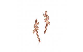 Tiffany Knot is an expression of love’s unwavering bonds. Inspired by an archival bow crafted in 1889, Knot is a symbol of life’s most enduring ties and meaningful connections. These earrings are crafted with rose gold and pavé diamonds, then polished by hand for high shine. Each round brilliant di..
