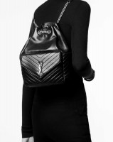 DIMENSIONS: 29 X 37,5 X 14 CM / 11.4 X 14.7 X 5.5 INCHESMATTE BLACK METAL HARDWAREGROSGRAIN LININGDRAWSTRING AND MAGNETIC SNAP CLOSUREINTERIOR: ONE MAIN COMPARTMENT, ONE ZIP POCKETEXTERIOR: REMOVABLE LEATHER STRAP WITH SAINT LAURENT PARIS ENGRAVED METAL PLAQUESTYLE ID 480585DTI0Z1000..